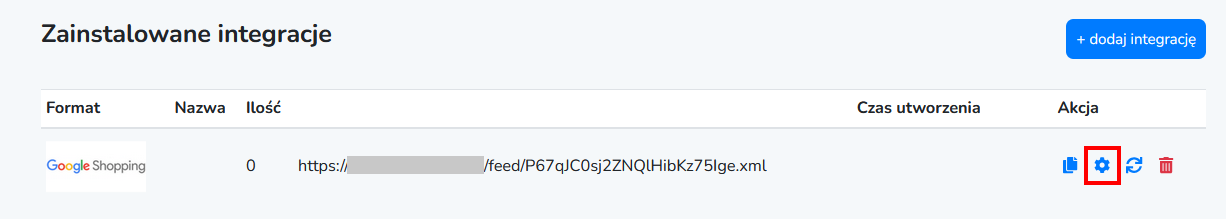 2. Na dostępnej liście wybierz integrację Google Shopping a następnie kliknij na ikonę generacji pliku