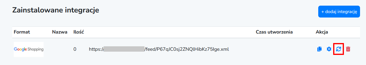 2. Na dostępnej liście wybierz integrację Google Shopping a następnie kliknij na ikonę generacji pliku